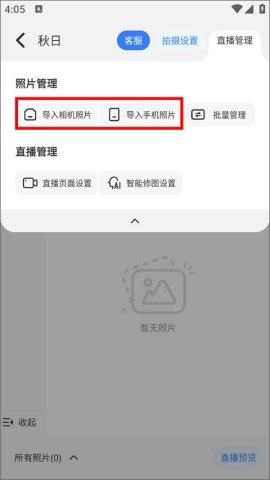 4、导入相册或相机照片,选择需要上传的图片;