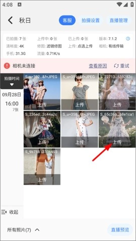 6、最后点击上传按钮,把照片一键上传至服务器,和观众分享。