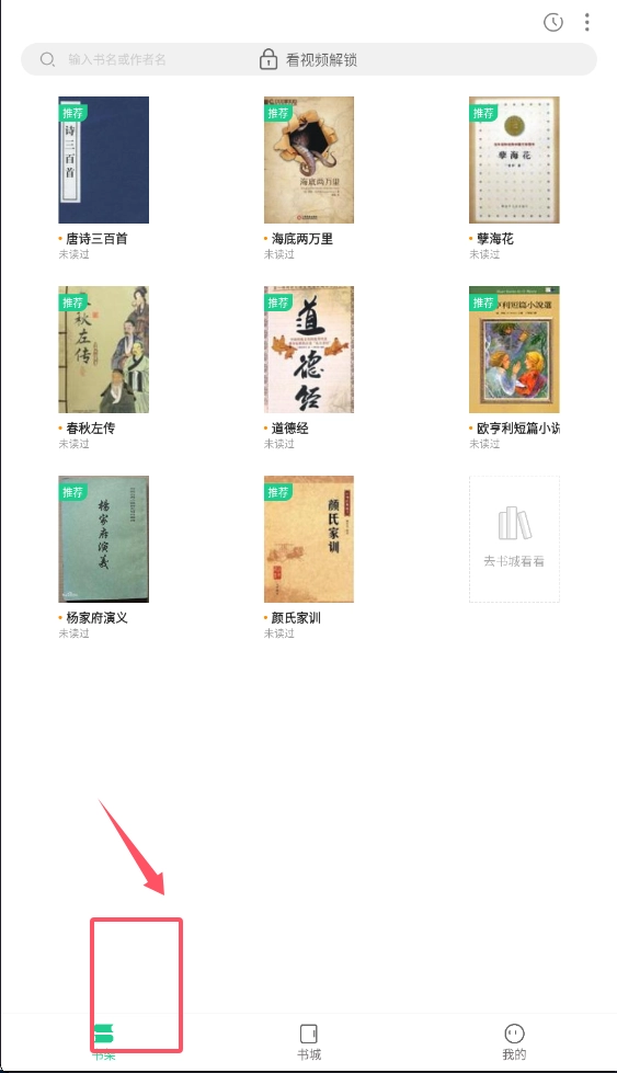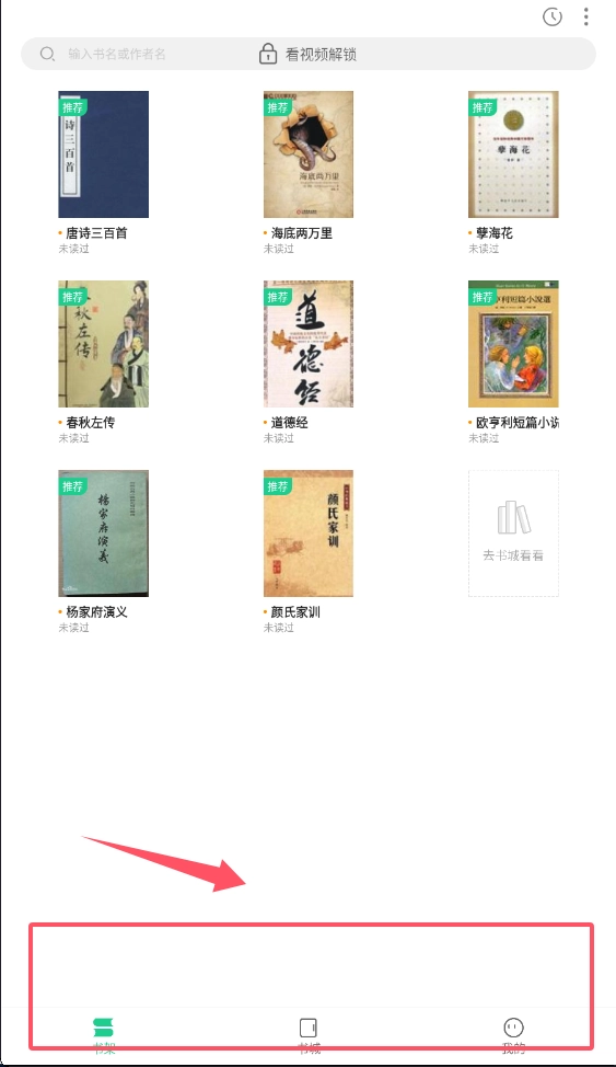 1、打开软件后先看底部导航栏,书架放你收藏的书,书城是找新书的地方,我的页面管设置。第一次用的话建议先点书城逛逛。
