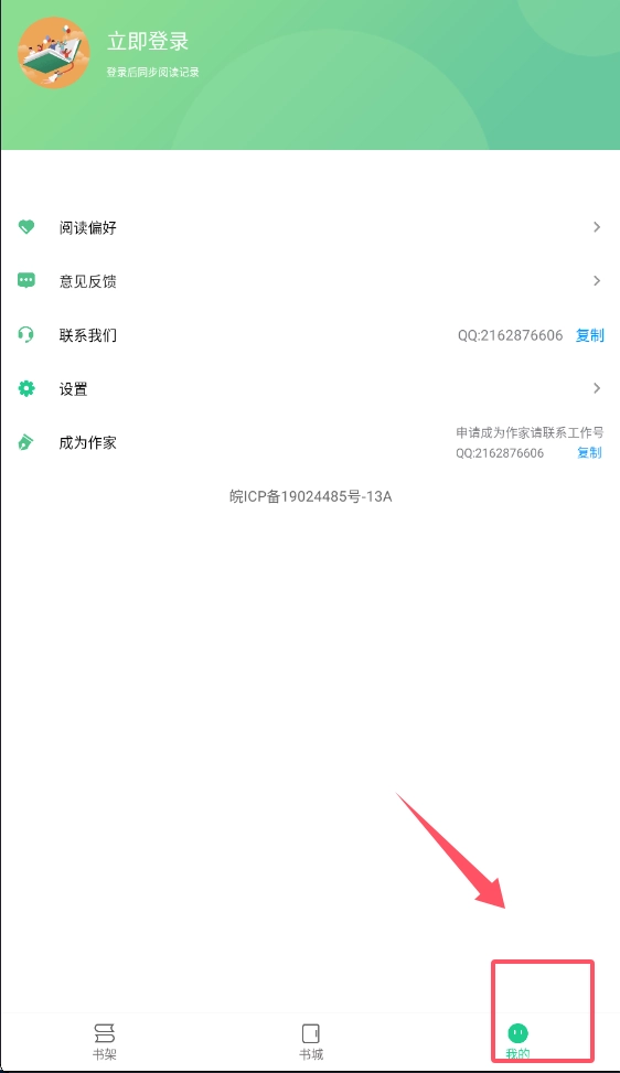 4、在我的页面可以登录账号同步阅读记录,还能设置阅读偏好。遇到问题可以通过意见反馈联系客服,QQ号在页面里写着。