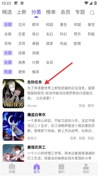 2、在【分类】页面,选择对应的分类,找到想要浏览的作品,比如【危险任务】这类。