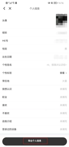 最后点击最下方的【导出个人信息】即可完成操作
