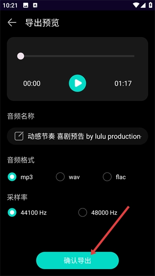 先确认音频的名称,接着挑选好想要的导出格式,最后点击“确认导出”按钮,就能完成音频的导出操作啦。