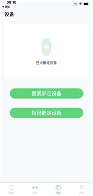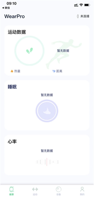 首先启动这款软件,系统会默认带我们进入健康界面,此时只需点击底部的设备按钮,就能切换到设备界面。