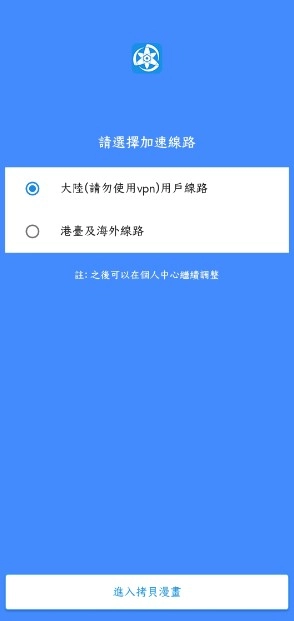 进入页面,默认是大陆用户线路