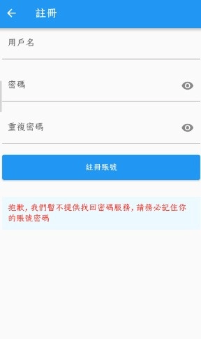 输入用户名、密码并确认密码,点击【注册账号】按钮就能完成注册流程。