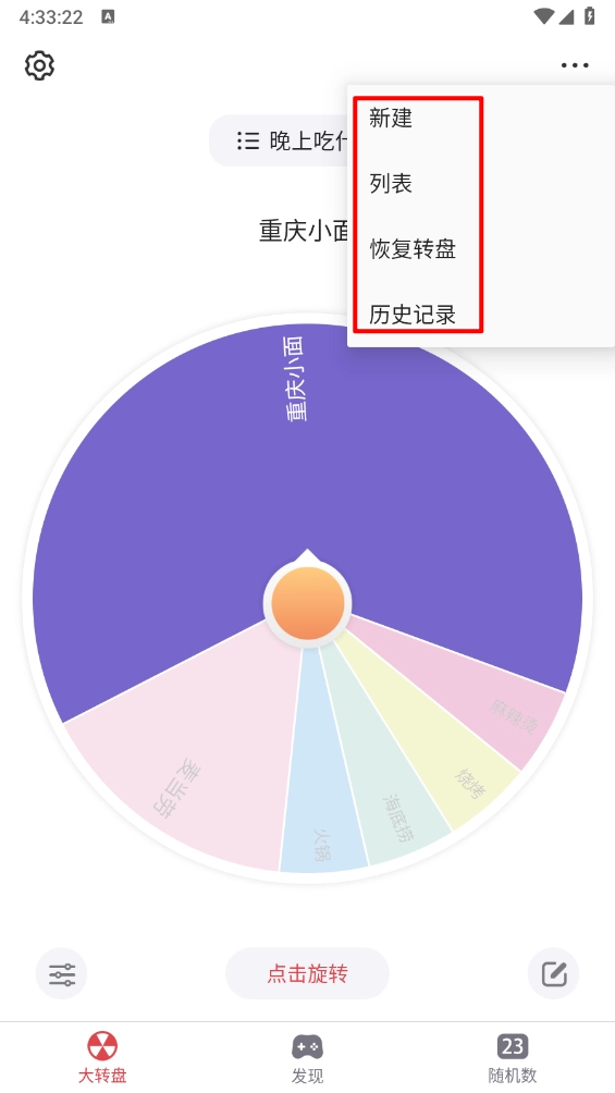接着点击右上角的三个点图标,就能开展新建选项、恢复转盘、新建转盘列表等操作。