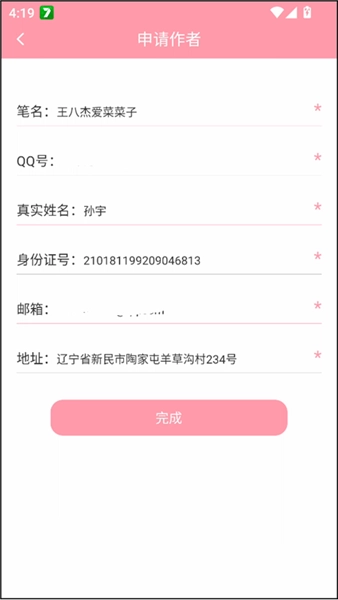 2、会要求我们进行作者申请操作,需要填写自己详细的个人信息。