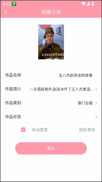 3、接着,我们便可以对小说封面、作品、简介等方面进行设置操作。