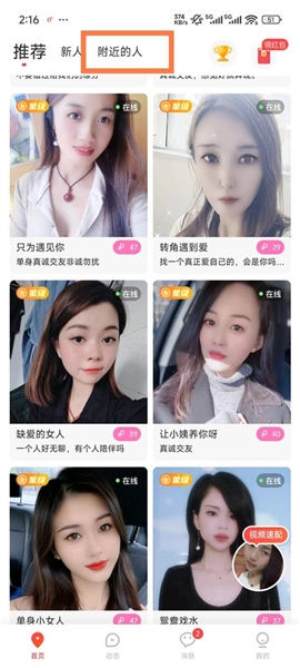 2、随后系统就会根据你的定位为你推荐附近的人,点击你感兴趣的