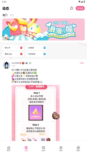 2、支持关注用户,关注对方之后,即可获取对方的最新动态;
