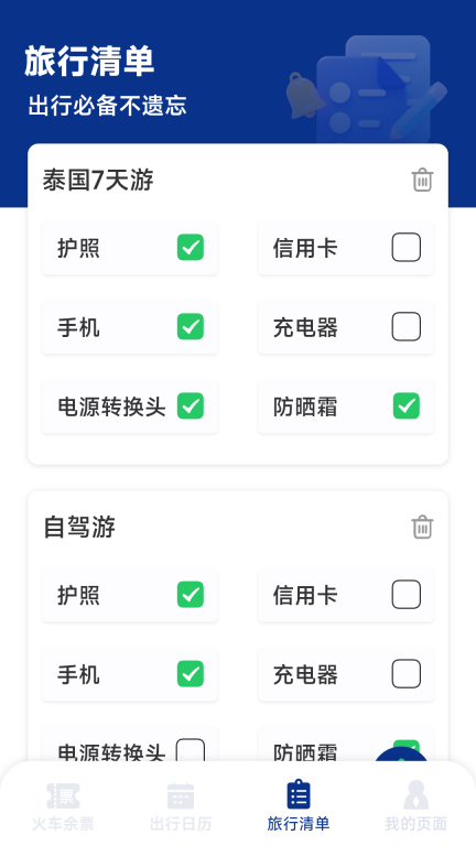 【携带物品清单】您可提前列出需要携带的物品,在出行前对照清单检查确认,避免遗漏重要物品。