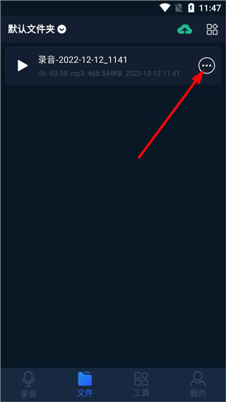 2、进入文件页面后,找到要导出的录音,点击其左侧的【...】按钮;