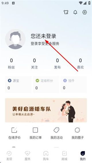 2、在“我的”页面点击“还未登录”,进入长安启源的登录界面。