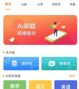 可以辅助中小学生开展日常AI刷题训练、观看AI名师视频学习,还能进行全景背单词、智能报听写,所有内容均与教材同步,便于学生及时查漏补缺,实现快速提分。