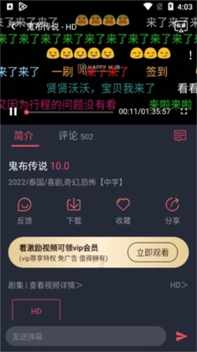 5、观看时我们可以开启弹幕、进行收藏以及分享等操作。