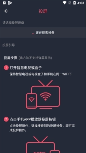 6、同时具备投屏功能,开启后软件会自动搜索可投屏的设备,完成设备绑定后即可畅享大屏高清画面。