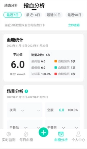 6、绑定后自动的同步数据可以在“每日血糖”和“血糖分析”内清晰的看到。