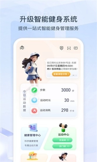 3、门店运动专区:便捷预约自助门店,在线选购系列课程,畅享全程智能督导的健身体验。