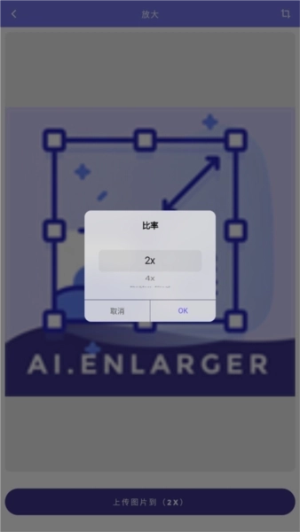 3、接着选择自己需要的放大倍速,这里提供2x、4x、8x三种选项,之后点击上传图片即可。
