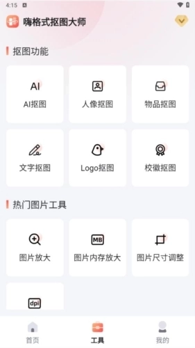 打开这款应用后,可依据需要抠图的图片特性来挑选对应的功能分区。