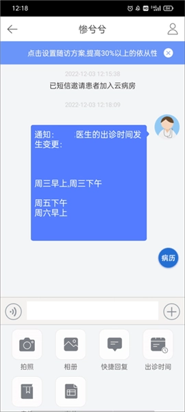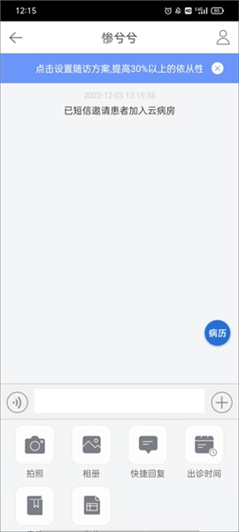 将患者添加至云病房,后续便可通过该页面的信息框向患者发送消息。