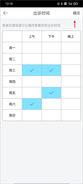 (1)点击底部菜单栏中的【我】,接着选择页面上方的“门诊时间”选项。