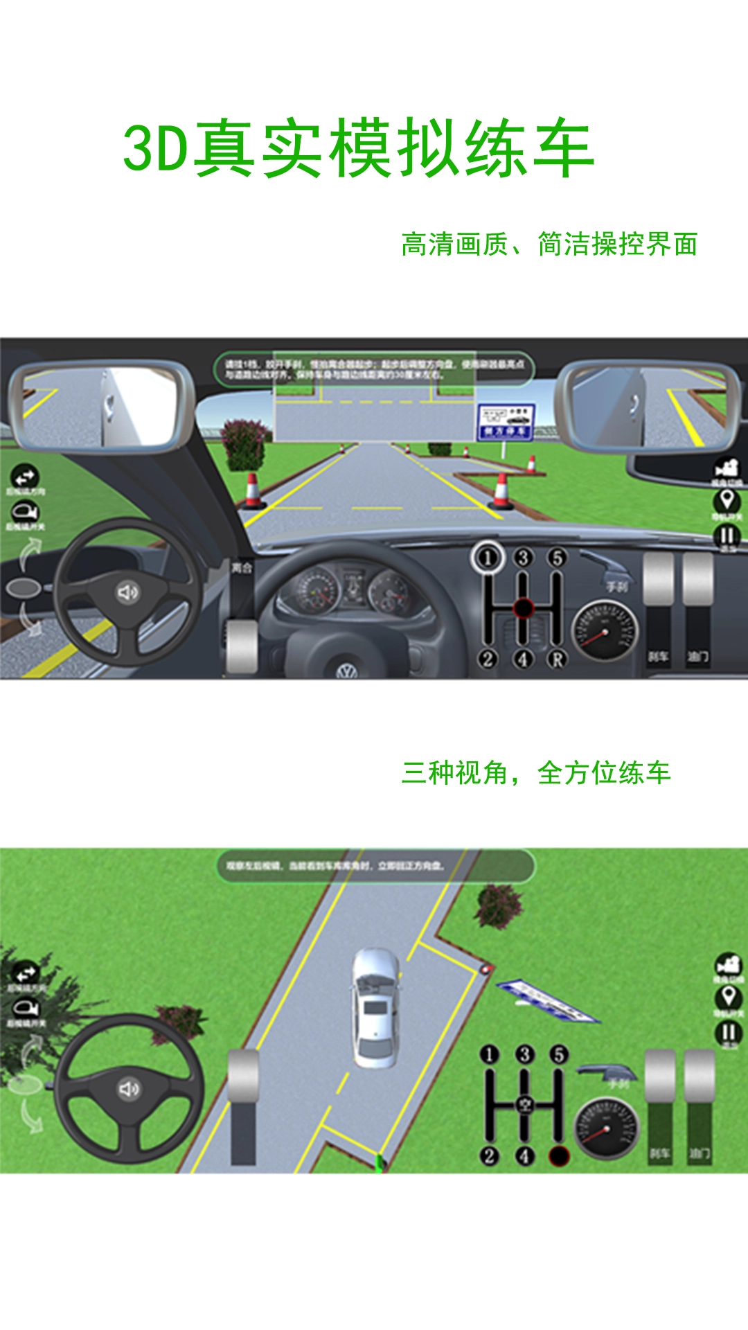 1、这是一款能真实还原驾校科目二、科目三考试场景的3D模拟驾考软件,助力大家更轻松地备战驾考。